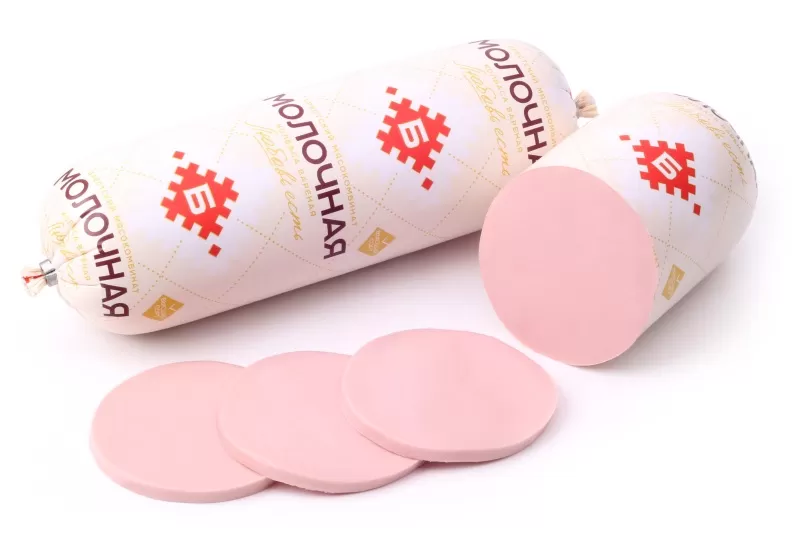 Вареная колбаса молочная является деликатесной и диетической, так как в ее состав входит нежное мясо молодого теленка.