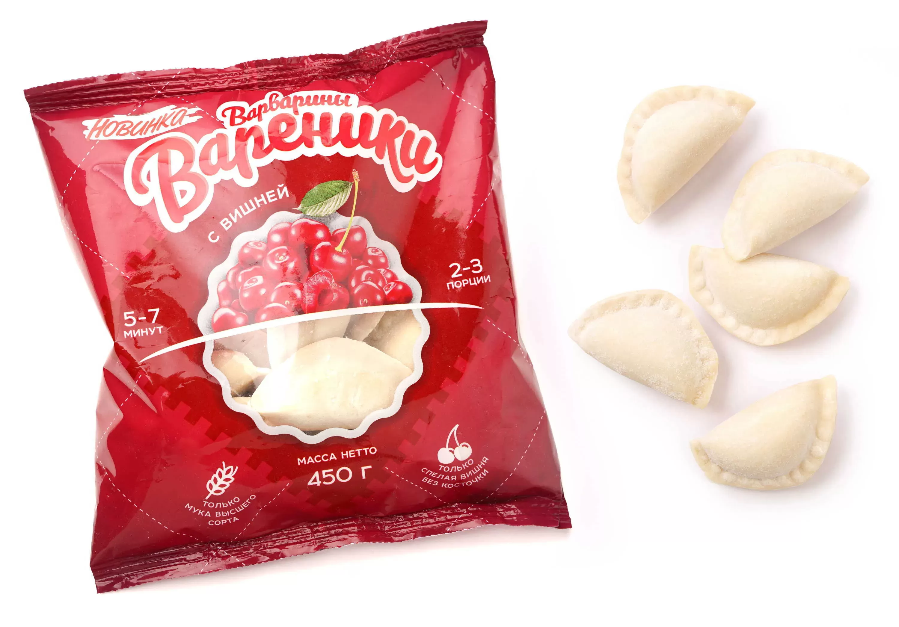 Состав: мука пшеничная, вишня, творог, сахар, крупа манная, масло из коровьего молока, яичный порошок, ванилин, масло растительное
